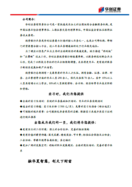 【华创证券】投资银行项目实习生